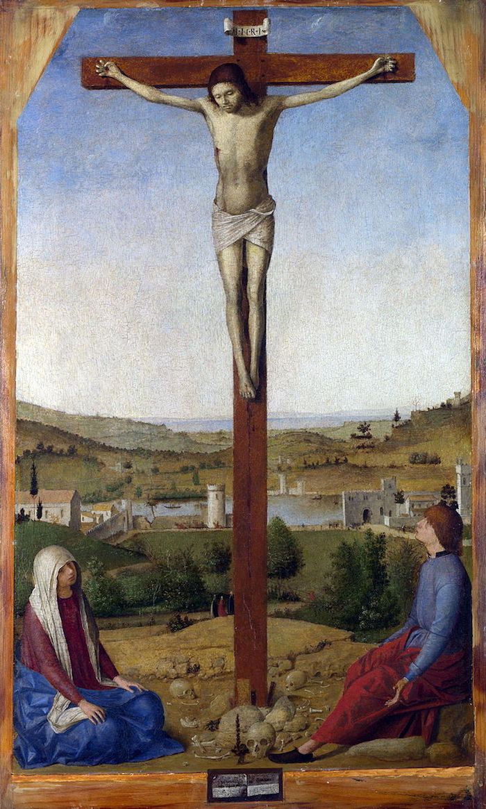 His Crucifixion, painted in 1475, displays, like his earlier Salvator Mundi, the influence on Antonello of Netherlandish painting, this time in landscape.