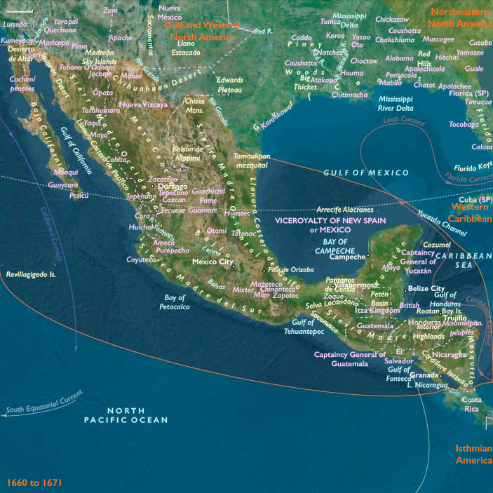 Myngs directs the largest buccaneer fleet as yet assembled, fourteen ships strong and with fourteen hundred pirates aboard, among them such notorious privateers as Henry Morgan and Abraham Blauvelt, and sacks San Francisco de Campeche in February.
