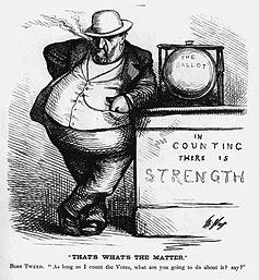 Contractors working for New York City—"Ring favorites, most of them – were told to multiply the amount of each bill by five, or ten, or a hundred, after which, with Mayor Hall's 'O.K.' and Connolly's endorsement, it was paid ... through a go-between, who cashed the check, settled the original bill and divided the remainder ... between Tweed, Sweeny, Connolly and Hall". (Paine, p. 144)