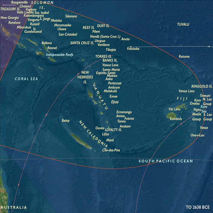 The Solomons, Vanuatu, Fiji, and New Caledonia, linked by networks that shared nut crops, shell ornaments, and ritual goods.