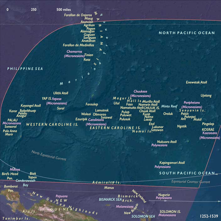 During the Lower Late Medieval Age, Micronesia stretched across the western and central Pacific, forming a vast constellation of coral atolls, volcanic high islands, and limestone plateaus.