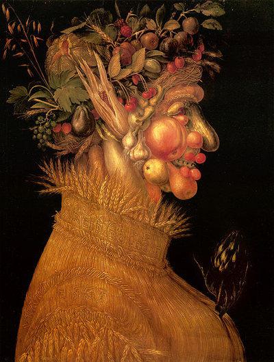 Many of his works are paintings of bizarre heads formed by combinations of fruits, flowers, animals, or fish.