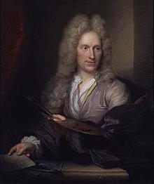 Jan van Huysum by Arnold Boonen, ca. 1720. Oil on canvas, 99.2 × 84 cm (39.1 × 33.1 in). Recently attributed to Boonen by Fred Meijer in 1994. Previously sold as a self-portrait of Jan's father Justus van Huysum.