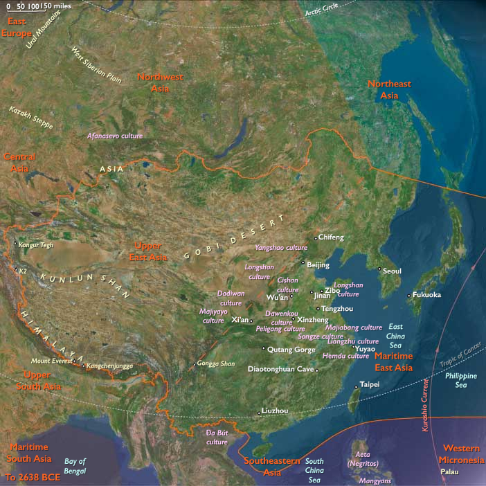 Japan’s Jomon culture, a hunting and gathering culture named for its cord-pattern ceramic wares, emerges in about the tenth millennium on eastern Japan’s Yamato Plain.