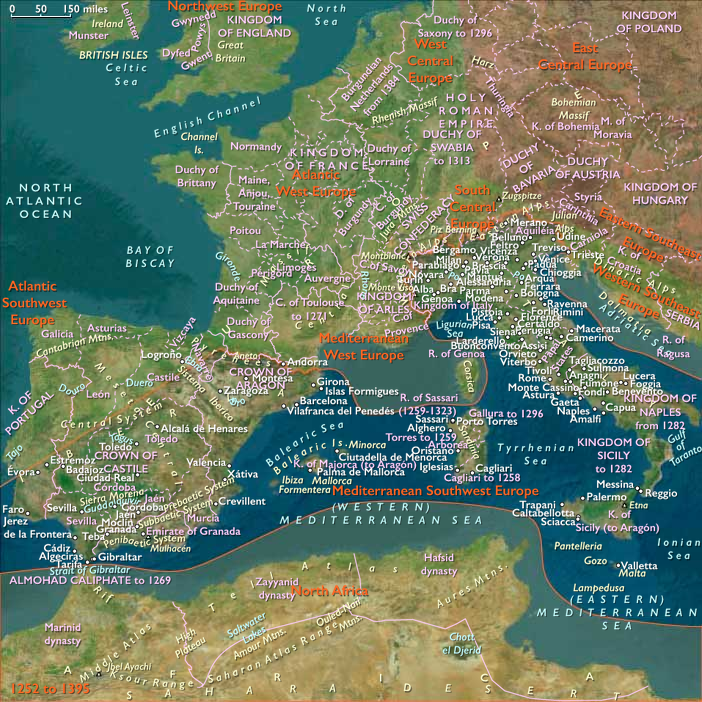 King Charles II of Naples maintains Angevin control in southern Italy, with Naples as his capital, until his death on May 5, 1309; his son Robert of Anjou, known as Robert the Wise, succeeds him as Robert I, his reign being blessed by Clement V who makes him papal vicar in Romagna.