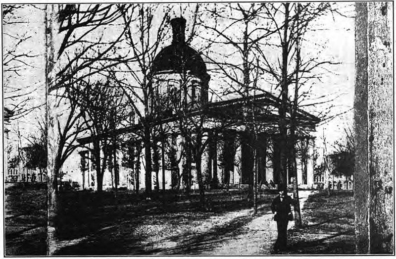 A photo of Indiana's third statehouse located in Indianapolis, a design inspired by the Parthenon. Photo taken c 1860, building was demolished in 1877