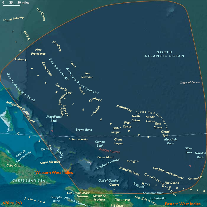 Anchors: the Bahamas, Turks and Caicos, northern Haiti (Cap-Haïtien, Massif du Nord), and the Cibao Valley of the Dominican Republic.