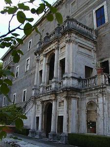 The complex comprises an elliptical cortile, two free standing portals, and the loggia with its fountain.