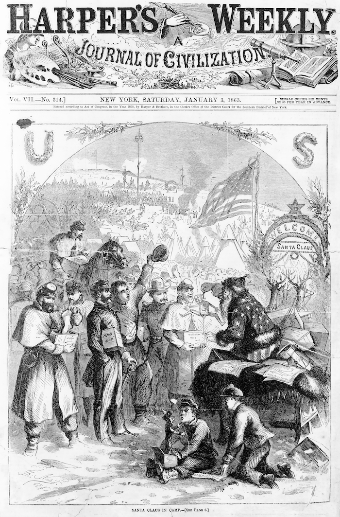 Harper's Weekly post-dates publication of Thomas Nast's first drawing of the modern Santa Claus (although Santa existed previously) to January 3, 1863.