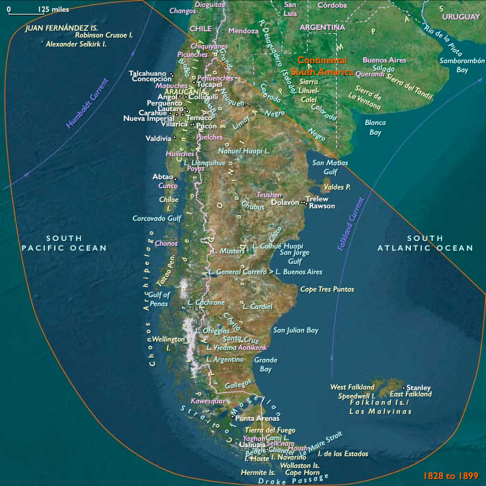Farther south, Peninsular South America—Patagonia, Tierra del Fuego, and the southern islands—shifted from Indigenous autonomy to national incorporation under Chile, Argentina, and Britain. The conquest of Indigenous lands completed the continental frame of modern South America.