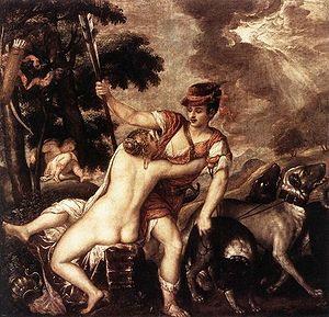 Titian paints a couple of splendid, light-filled versions of Venus and Adonis in about 1560.