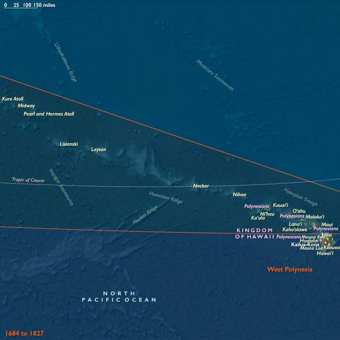 The third Pacific expedition of Captain James Cook, with ships HMS Resolution and HMS Discovery, first views O'ahu, then ...