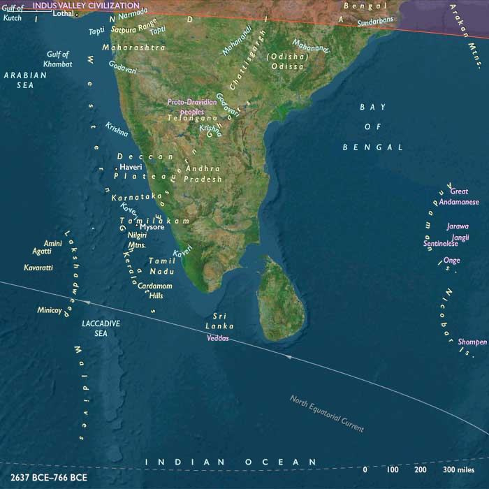 Aridification after 2000 BCE rebalanced habitation eastward toward the rain-fed Ganga system, while southern peninsulas and islands developed independent agro-maritime economies.