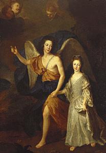 One of his earliest works in this sphere is an allegorical portrait of Prince James Francis Edward Stuart and his sister Princess Louisa Maria Theresa, showing the prince as a guardian angel leading his sister under the gaze of cherubim (1699), now in the Royal Collection.