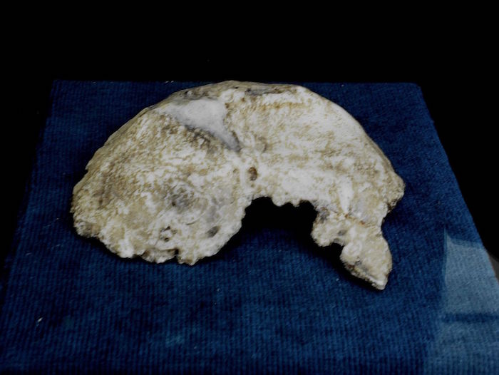 The fossil, the skull of an adult female, has heavy browbridges, and a large projecting face.