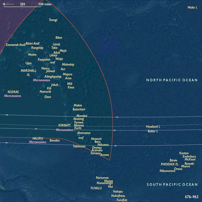 Micronesia arcs between the tropic lines, divided by ecological type into two main subregions.