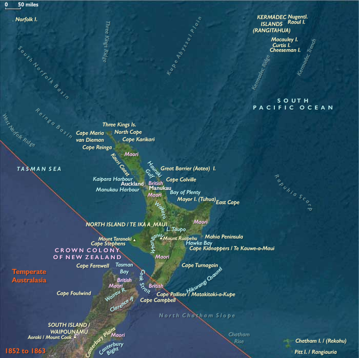Fighting in the Taranaki Wars is concentrated in the area around New Plymouth.