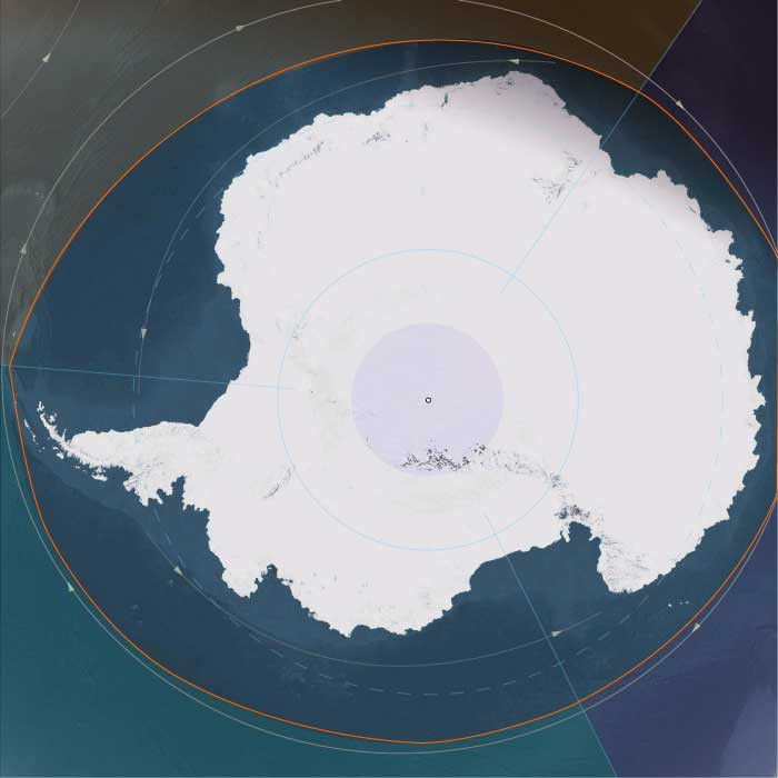 The desolate Kerguelen Islands, marking the convergence of Southern Africa, Australasia, and Afroasia, form its easternmost point.