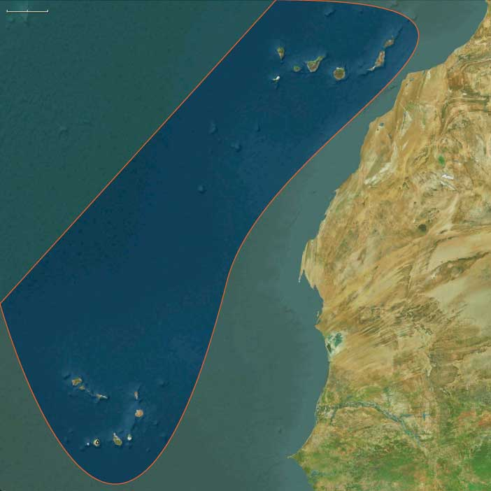 The northwestern boundary extends from south-central Germany along the Swiss border, encompassing all Swiss cities except Basel. It then separates southern France from northern France, continues through Spain, and divides Portugal at Setúbal, marking a north-south division within both countries. The boundary then extends into the Atlantic Ocean, where it distinguishes Madeira (a Portuguese territory) from the Canary Islands (ruled by Spain).