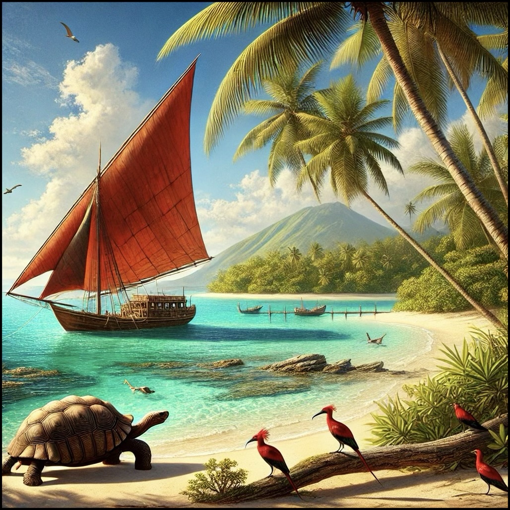 The Seychelles and Mascarene Islands were uninhabited, their ecosystems dominated by seabirds, turtles, and unique flora.
