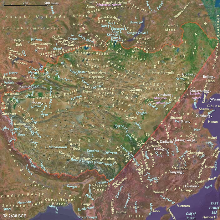 Last Glacial Maximum (26,500–19,000 BCE): Cold, dry, and windy; monsoons weakened; northern forests retreated into refugia; grasslands spread across the Loess Plateau and Ordos; glaciers expanded in the Altai and Tibet.