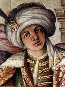 Fresco detail of Robert Shirley visiting Pope Paul V, Sala dei Corazzieri, Palazzo del Quirinale, Rome. Painted in 1615-1616.
