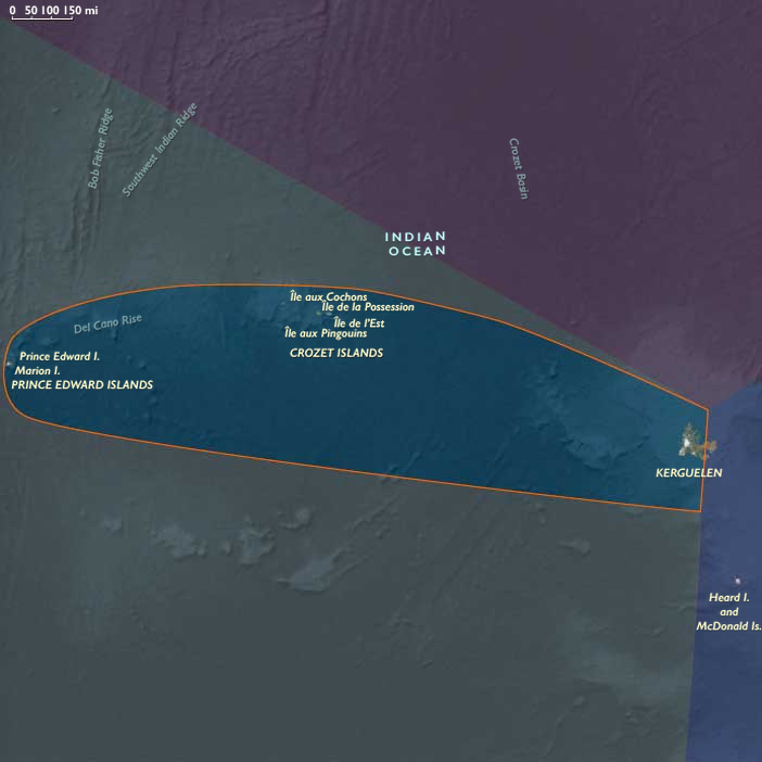 The subregion of Southwest Indian Ocean includes Kerguelen west of 70°E, the Îsles Crozet, Prince Edward Island, and Marion Island. Western Kerguelen’s ice-carved plateaus, the rugged volcanic Crozet peaks, and the smaller Prince Edward and Marion Islands defined this scattered maritime landscape.