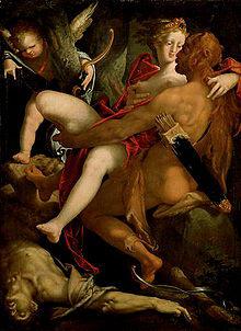 Spranger, noted for his paintings of nudes executed in the late Mannerist style, employs mannered poses, slender, elongated bodies, and a gleaming, brittle texture in his efforts to develop a Northern artistic canon of the human figure.