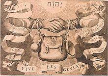 The patriot party adopts the emblems of beggarhood, the wallet and the bowl, as trinkets to be worn on their hats or their girdles, and a medal is struck having on one side the head of Philip II, on the other two clasped hands with the motto Fidèle au roy, jusque'à porter la besace ("Loyal to the King, till carrying the beggar's pouch").