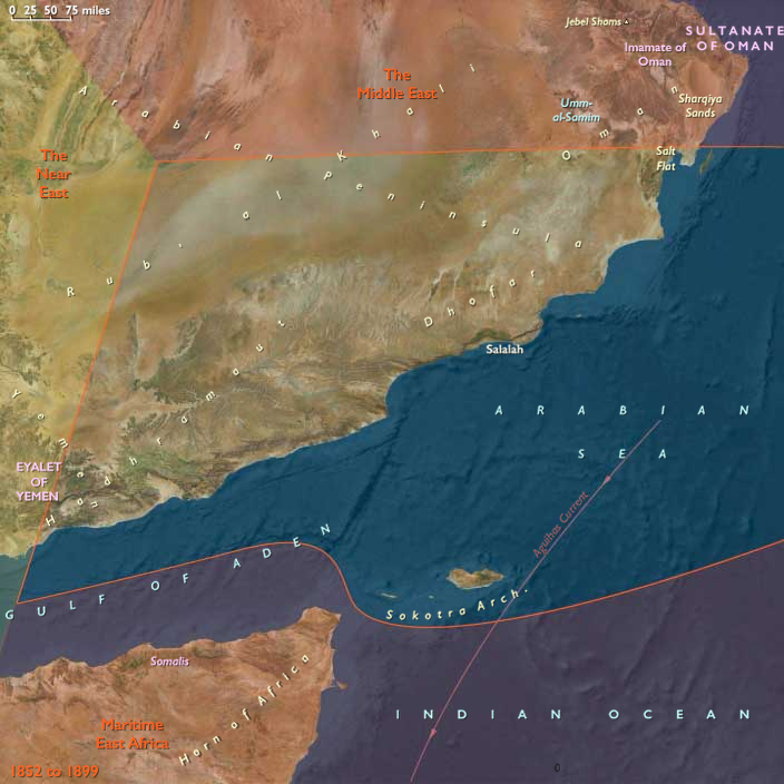 Southeast Arabia — southern Oman, eastern Yemen, and the island of Socotra.