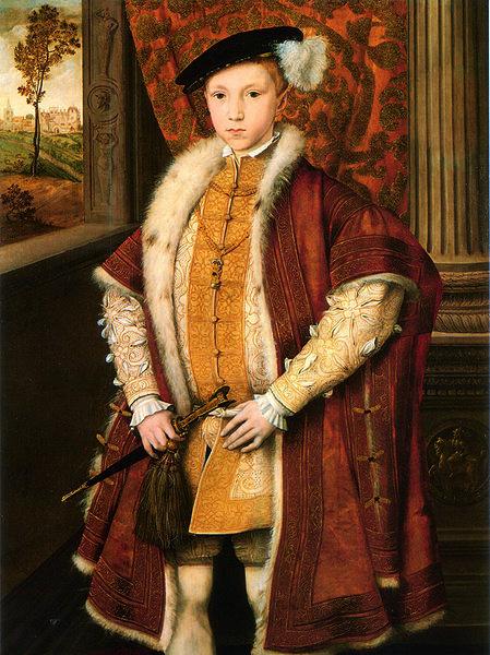 Upon Henry’s death, his nine-year-old son by Jane Seymour succeeds him as King Edward VI.