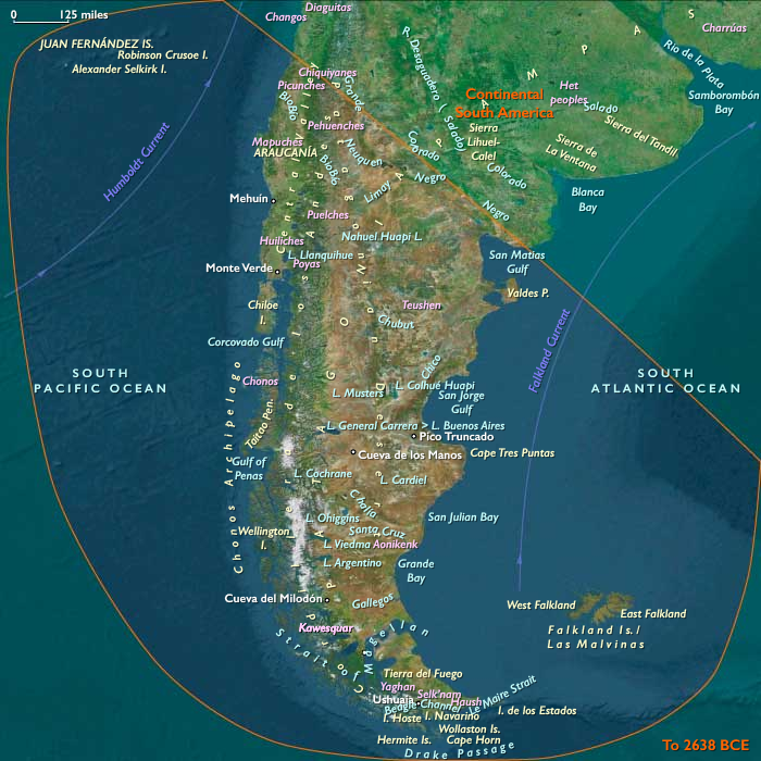 The Ends of the Earth, one twelfth of the Earth’s surface, is bordered by the South Atlantic and South Pacific Oceans and includes Subcontinental South America, the Chonos Archipelago, Chiloé Island, Tierra del Fuego, the Falkland Islands, the remote Juan Fernández Islands (notably home to the marooned sailor Alexander Selkirk from 1704 to 1709, an experience thought to have inspired Daniel Defoe’s Robinson Crusoe), the even more remote Easter Island, and West Antarctica—the portion of Antarctica that lies within the Western Hemisphere and includes the Antarctic Peninsula.